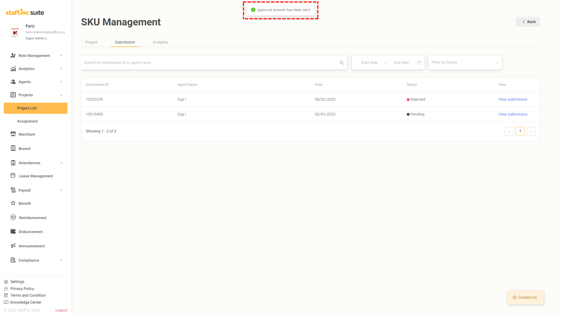 - Di kolom Submission, Anda bisa melihat data-data yang disubmit oleh para pekerja.