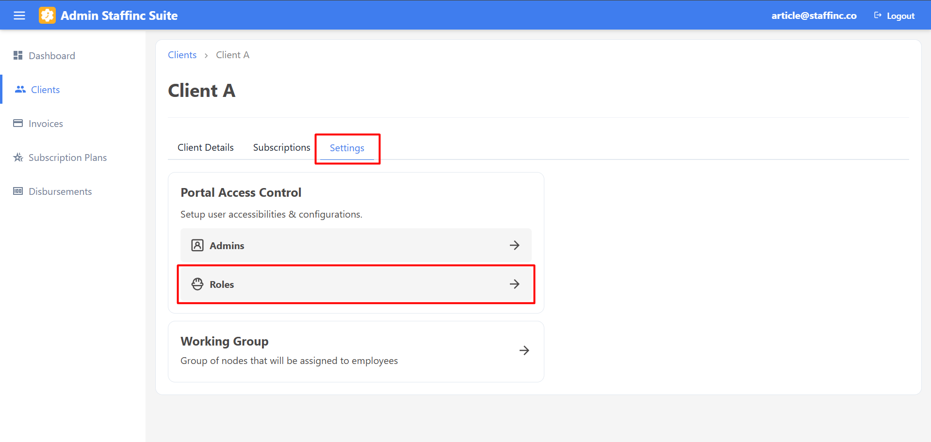 - Kelola peran dengan mudah di Staffinc Admin Portal